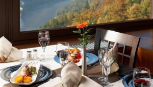 Breakfast is a buffet in the main building. Dinner is in a near building which provides great views (best during hours of daylight, at night you cannot see any of the view below). Make a reservation if you want a window table.