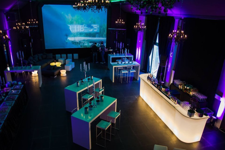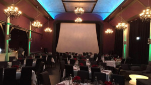 Der Veranstaltungssaal – ein Kleinod im historischen Ambiente mit wunderbar hohen Bogendecken – ist ausgestattet mit moderner Lichttechnik (Steuerung per iPad), Projektoren, Leinwand und einem variabel einsetzbaren Bühnenraum.
