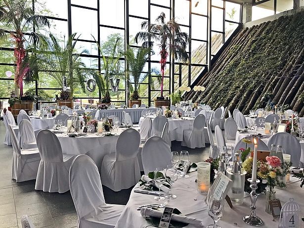 Traumhochzeit für ca. 50 Gäste in der Biosphäre Potsdam. Im Preis inklusive: • Exklusive Nutzung des Cafe Tropencamps • Festlich eingedeckte Tafeln • Sommerliches Buffet • Hochzeitstorte • Getränke nach Verbrauch • Servicepersonal • Zutritt zum Tropengarten • DJ • Ambientebeleuchtung Dauer: 10 Stunden