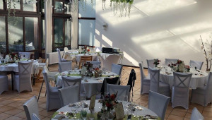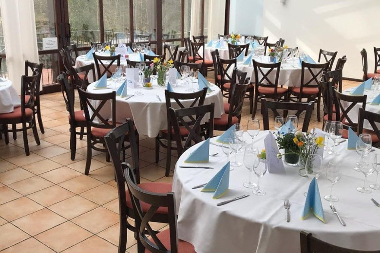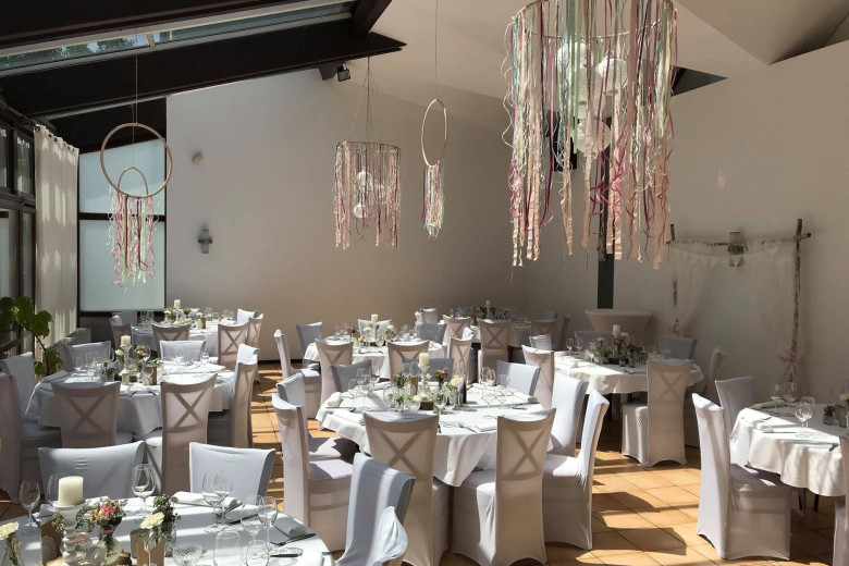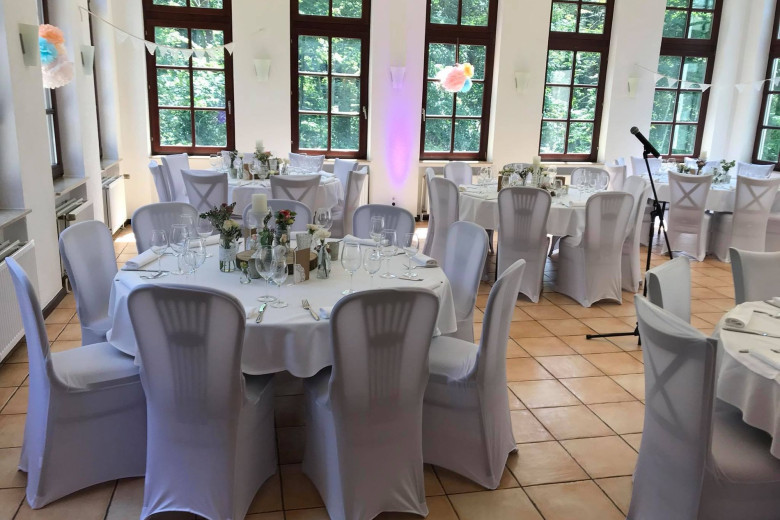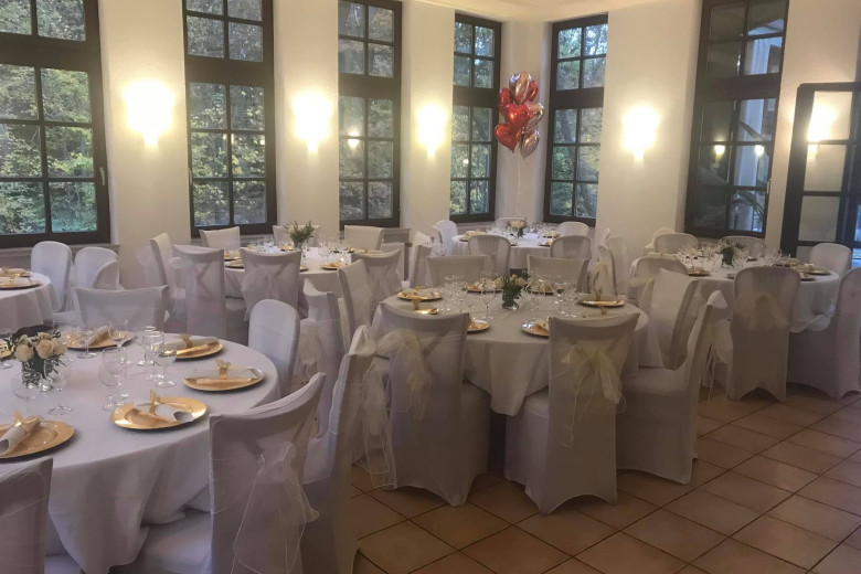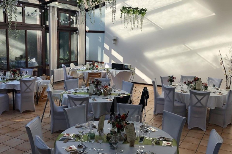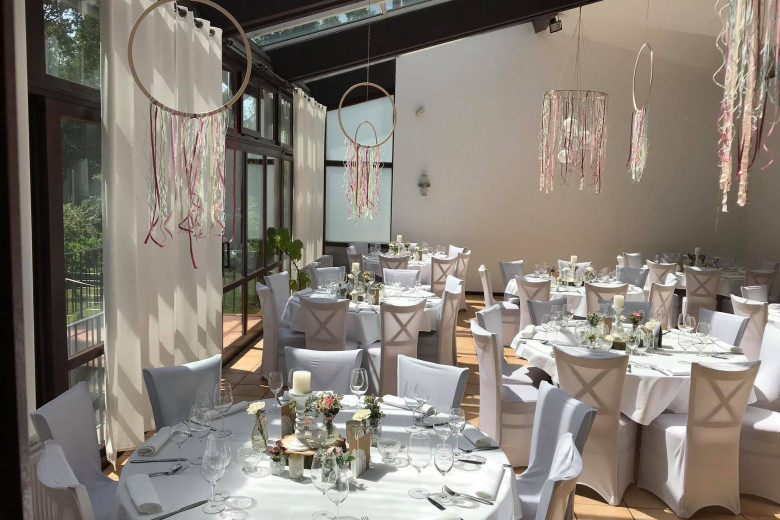 Feiern Sie Ihre Hochzeit in unserem hellen Räumlichkeiten mitten im tiefgrünen Wald. Mit bis zu 120 Personen können Sie in unserer Hochzeitslocation in Bonn einen unvergesslichen Tag in entspannter Atmosphäre erleben. An locker angeordneten Banketttischen bietet ein großzügiger Wintergarten, in dem auch freie Trauungen möglich sind, ausreichend Platz für Ihre Gäste. Bodentiefe Fenster bieten von hier aus einen wunderschönen Blick in den angrenzenden Wald. Bei der Dekoration des Saales richten wir uns gerne nach Ihren Vorstellungen und stehen immer gerne beratend zur Seite!