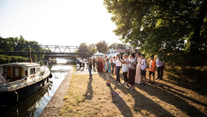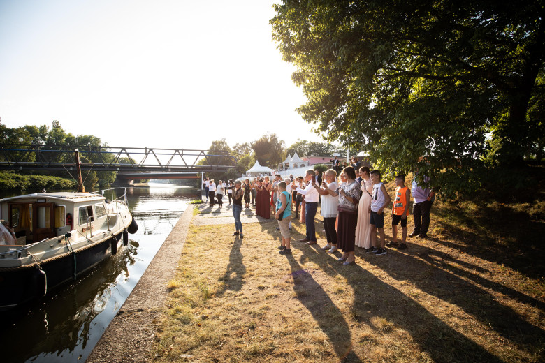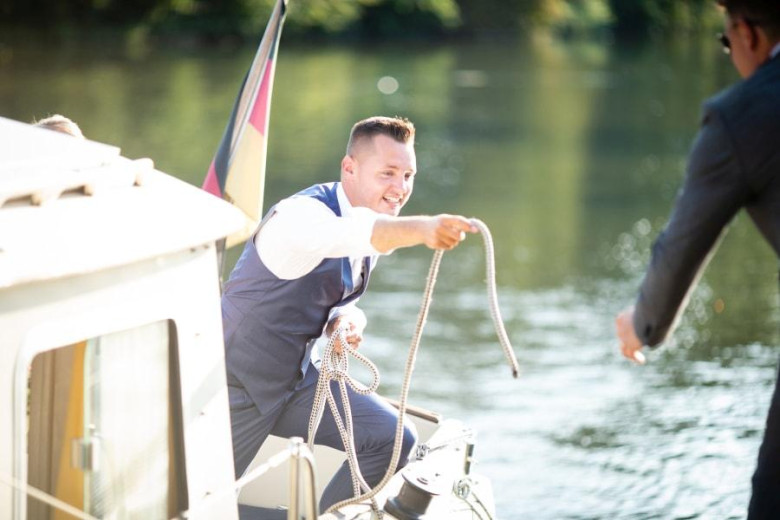 Location direkt am Wasser. Das Brautpaar kann nach kleiner Bootstour an der Anlegestelle in Empfang genommen werden.