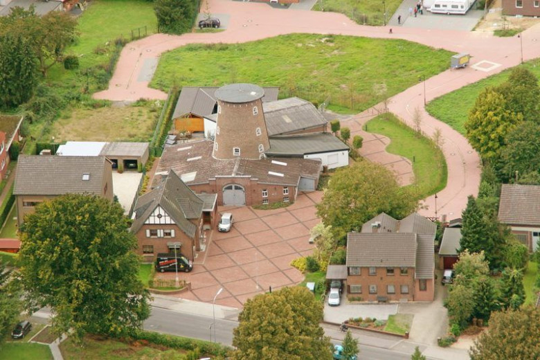 Bereits 1855 hatten die Bürger Johann Erckens und Josef Thoer an der Brüggener Straße diese Turmwindmühle errichtet, am höchsten Punkt, der 96 Fuß über dem Erdboden lag und von einem Erdwall umgeben war.