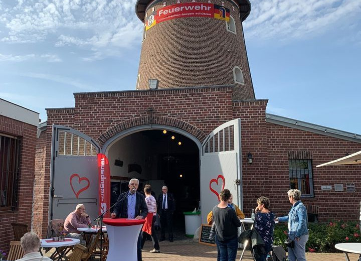 An windstillen Tagen wurde die Mühle von einem „Dampflokmobil“ in Gang gesetzt, erst 1913 konnte sie auch elektrisch bedient werden.