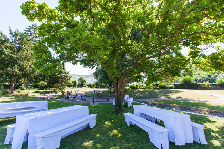 Die Mosel zu Füßen und den Blick auf die weiten Weinberge gerichtet, können Sie einen der regionalen Spitzenweine oder ein hausgebrautes kühles Bier von Braumeister Michael Berthold genießen.