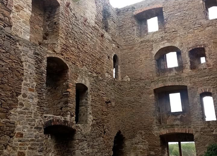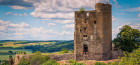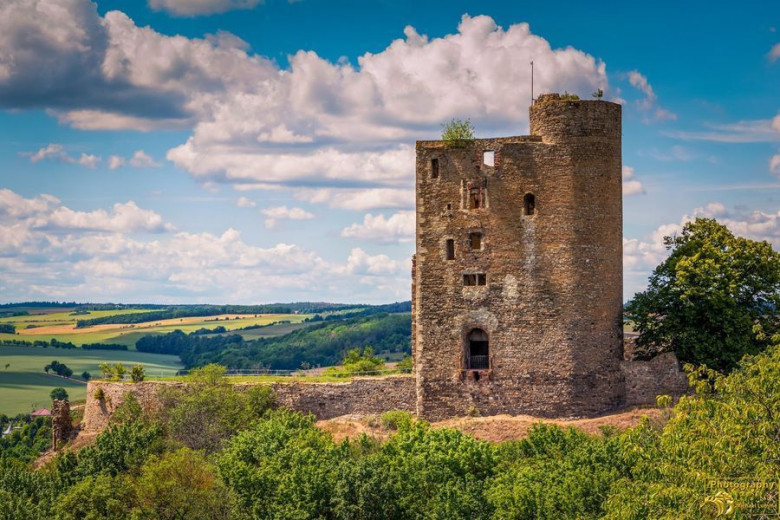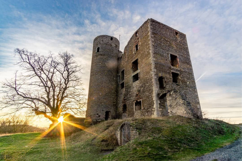 Eindrucksvolle Ruine, gut erhaltenes Mauerwerk des Bergfrieds. Es lassen sich Reste der äußeren Burgmauern und weiterer Burggebäude erkennen.