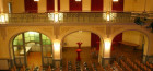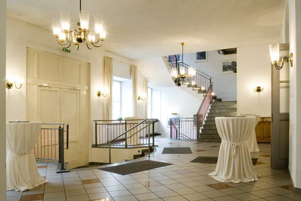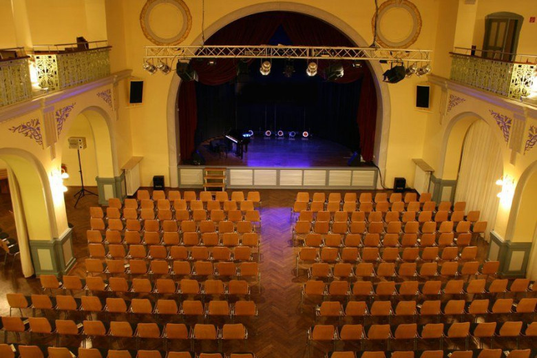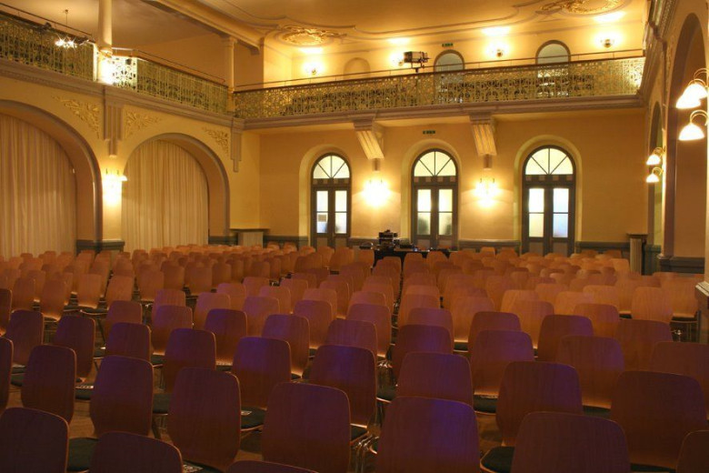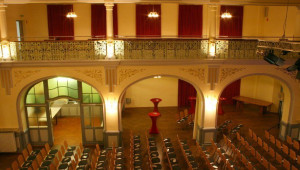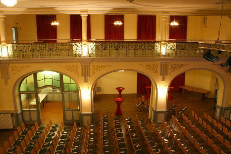 Im Inneren faszinieren ein großzügiges Foyer, das zu Stehempfängen einlädt, ein Seminar- und Schulungsraum, sowie der großzügige Saal samt Bühne und umlaufender Empore im Jugendstilambiente. Für das perfekte Gelingen jeder Veranstaltung sorgen modernste Ausstattungsdetails wie eine großzügige Küche und Bar, eine 4 x 3 Meter große Projektionswand und Sound-Equipment für den perfekten Ton.