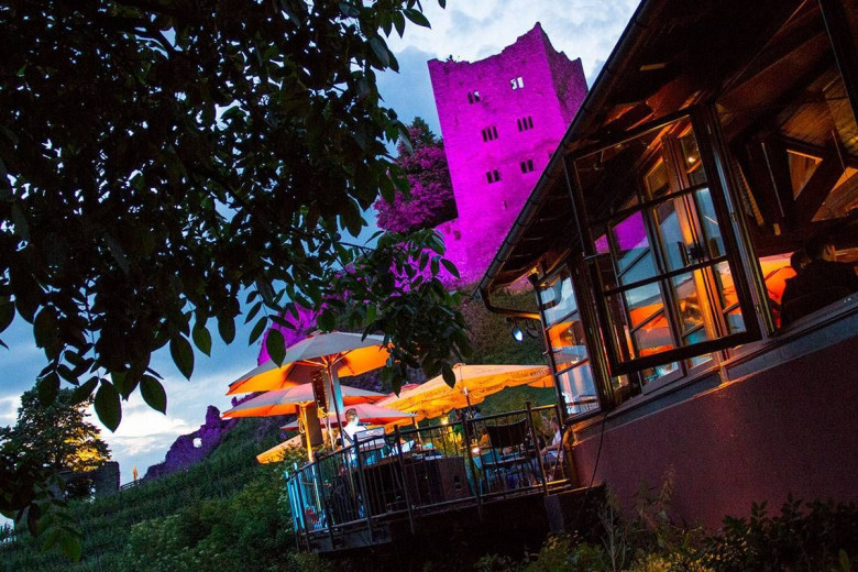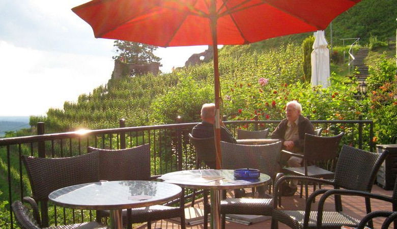 Nice view on the Schauenburg ruin as well as the vineyards. Friendly service. dogs are welcome.