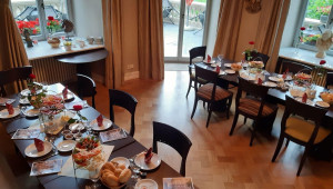 Nach der Pandemie geniessen und auf der Terrasse chillen. Kaffee, Wein, feinste Torten, Kleine Gerichte. Flammkuchen...herrlich