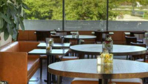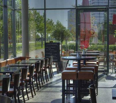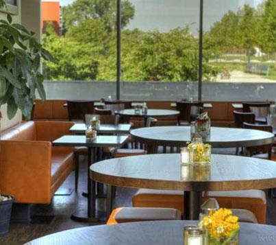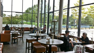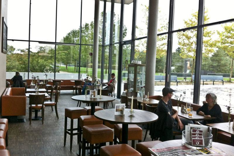Das Café bietet im Erdgeschoss 80 Gästen, davon 40 Plätze mit Hochtisch und auf der Galerie 40 Gästen, Platz.