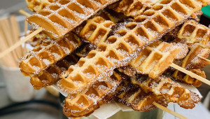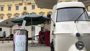 Frisch gerösteter Spitzen-Kaffee mit Profisiebträgermaschine zubereitet. Kaffeemobil Ape von Piaggio oder Kaffee-Theke mit ausgebildeten Profi-Barista Latte Art.