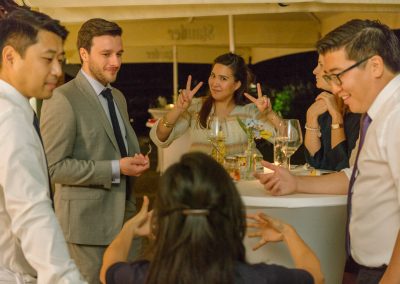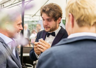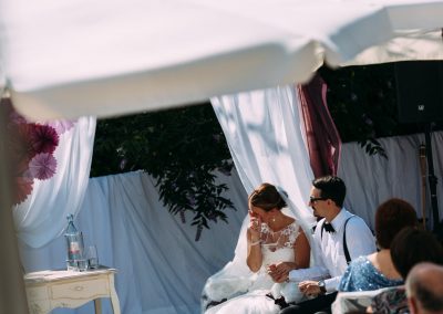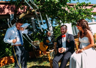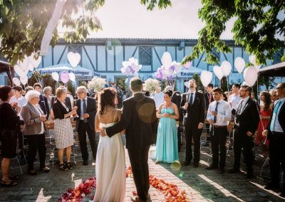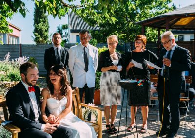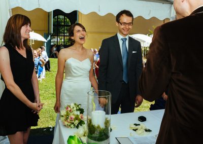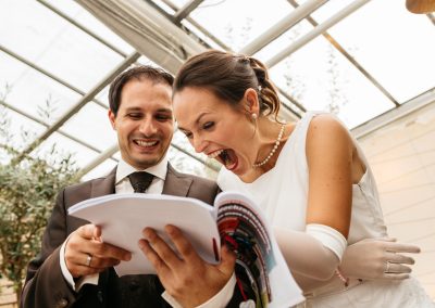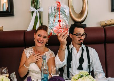 Wir haben mit Chris die beste Wahl getroffen. Schon im Vorbereitungsgespräch wirkte er sehr sympathisch, frisch und kreativ und dieser Eindruck hat sich auch bei seinem Einsatz an unserem Hochzeitswochenende bestätigt. Wir haben ungewöhnliche, ganz besondere Bilder sowohl von der Zeremonie als auch von der Feier und können uns nun dank des hochwertigen, kreativ zusammengestellten Foto-Kunstbuchs für immer an seine künstlerische Begleitung unserer Hochzeit erinnern.