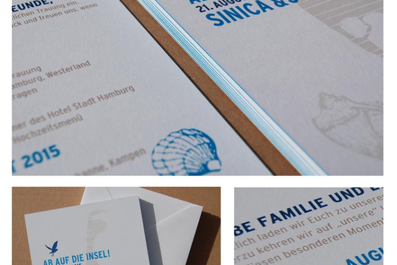 Für diesen ganz besonderen Tag in Ihrem Leben entwickeln wir ein ganz besonderes Designkonzept – und setzen es in einem exklusiven Hochzeitssignet, Drucksachen und einer eigenen Webseite um. Wir machen nur Sonderanfertigungen, auf Wunsch des Brautpaares, alle Drucktechniken, Pocketfolds, Klappkarten etc
