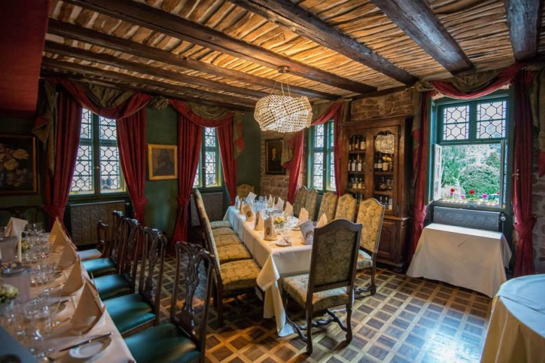 Nun, über das Ambiente kann man sicherlich streiten, aber man befindet sich ja auch in einem Gebäude dessen Kern auf das 14. Jahrhundert zurück. Unstrittig hingegen ist der exzellente Service und das spektakuläre Menü. Jeder einzelne Gang (wir hatten alle 4 Gänge) war perfekt und nicht zu verbessern. Kleiner Tipp-auch wenn es verlockend ist, nicht am tollen Brot satt essen. Die Weinbegleitung war für meinen Geschmack nicht ganz rund, aber die Geschmäcker sind verschieden.