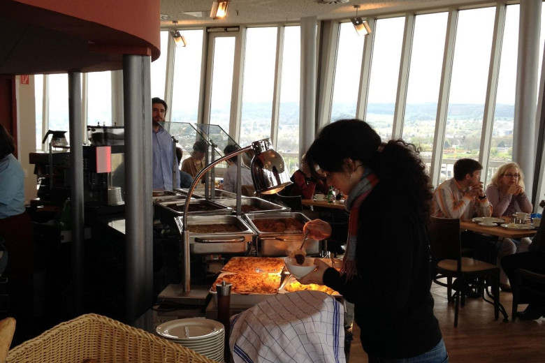 Excellent views of aachen, great little coffe and cakes, good atmosphere. Will definitely return, would be excellent to hire out for a party for new years eve or something similar