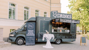 Die Drive Bar ist ein altes Postfahrzeug, umgebaut zu einem modernen, hochwertigen mobilen Bar-Truck.