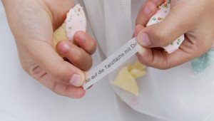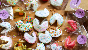 Fröhliche, kleine Glückscookies in verschiedenen Farben und Dekorationen mit personalisierter Botschaft. Stelle deinen eigenen Glückscookie zusammen. Entscheide selbst zwischen Farbe, Dekoration, Geschmack und Inhalt.