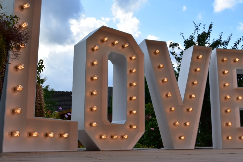 Paket bestehend aus: - 1,30m XXL Keuchtbuchstaben "LOVE" - Bodennebelmaschine - Dimmer Auf Wunsch kann das Paket natürlich noch angepasst und erweitert werden mit zum Beispiel: - Funkenmaschinen - Stroboskope - Lichtanlagen - usw....