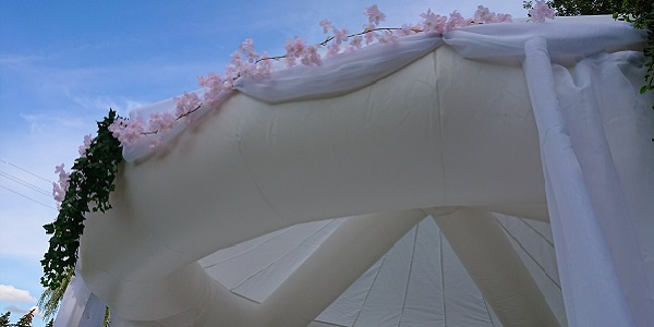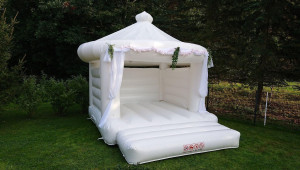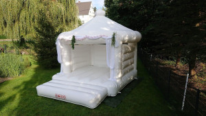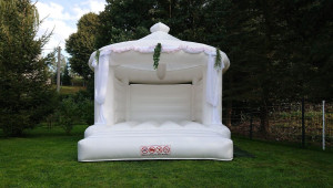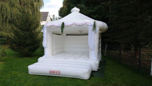 Unsere weiße Hüpfburg wird insbesondere für Hochzeiten gerne gebucht. Die Besonderheit: Sie hat XXL-Maße (5x4x4 Meter) und bietet Platz für bis zu 6 springende Erwachsene auf einmal.