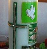 Taufkerze und Patenkerzen werden inviduell gestaltet und beschriftet.