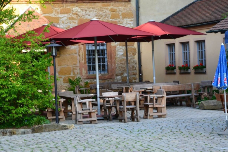 Netter Biergarten in historischer Kulisse. Essen war nicht herausragend, aber durchaus angemessen für ein gutbürgerliches Lokal. Geschmeckt hat es uns trotzdem.