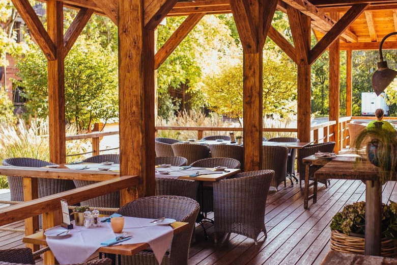 Man sitzt im Grünen. Die Gerichte sind sehr gut. Bedienung sehr freundlich.