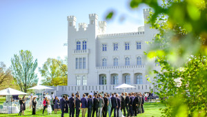 Genießen Sie den wichtigsten Tag Ihres Lebens im stilvollen Ambiente des Hotels. Hier werden Traumhochzeiten Wirklichkeit: als Außenstelle des Standesamtes bieten wir Ihnen eine Trauung mit atemberaubendem Blick auf die Ostsee. Fahren Sie ganz romantisch mit der Kutsche zur nahe gelegenen Waldkapelle, geben Sie ein rauschendes Fest im historischen Ballsaal oder direkt auf der Wiese vor der Burg Hohenzollern, bevor Sie zauberhafte Nächte in unserer wunderschönen Hochzeitssuite verbringen.