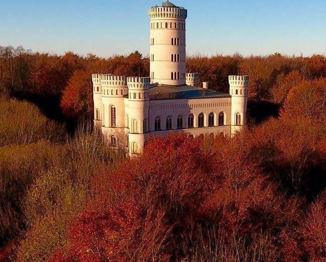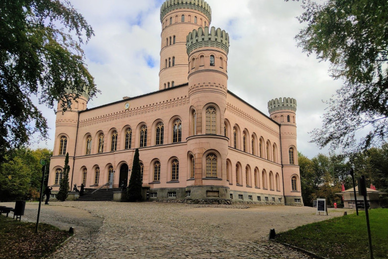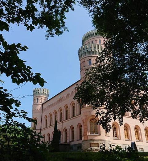 Im Urlaub sind wir zu Fuß vom Parkplatz bis zum Jagdschloss gelaufen. Der Parkplatz liegt schräg gegenüber vom Bahnhof Binz. Ein anmutiges Jagdschloss mit seinen 5 Türmen und vom mittleren Turm aus hat man eine schöne Aussicht wenn man schwindelfrei ist. Am Schloss ist ein Biergarten.