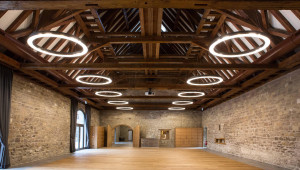 ab 80 Personen. Inklusive: Bestuhlung, Technik, Stehtische mit Husse. Gegen Aufpreis: runde Tische, weiße Stuhlhussen, weiße Tischdecken, Servietten & Menükarten