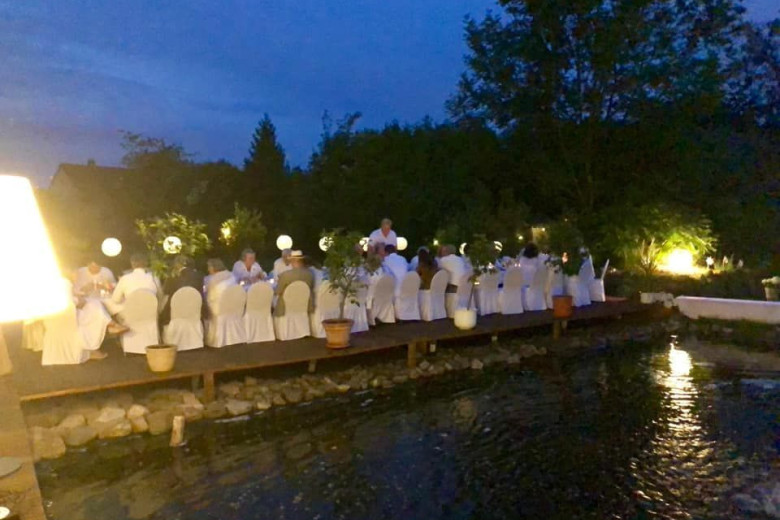 Gemeinsam machen wir die Feier zum unvergesslichen Erlebnis, für Dich und Deine Gäste. Unsere Brennerei gibt es seit 1284 und war immer schon in unserem Familienbesitz! Seit 5 Jahren brennen wir Gin und Obstbrände. Die Brennerei dient gleichzeitig als Veranstaltungsraum und seit 2018 auch als Standesamt. Dort können bis zu 110 Personen bewirtet werden. Die Miete beträgt 300€ und für die Trauung berechnen wir 150€. Der Caterer für das Essen ist frei wählbar, die Getränke werden von uns serviert: von erlesenen Weinen , selbstgebrautem Hofbräu bis zum erfrischenden Gin Tonic. Zusätzlich können die Gäste bei schönem Wetter in der Gartenwirtschaft die Party beginnen lassen. Als weitere Besonderheit dient ein Steg am hofeigenen See als traumhafter Platz für eine Trauung im Freien. Auf dem Steg finden bis zu 80 Personen Platz. Außerdem kann dort ein Dinner für 40 Personen durchgeführt werden. Für den Steg berechnen wir 150€ extra.