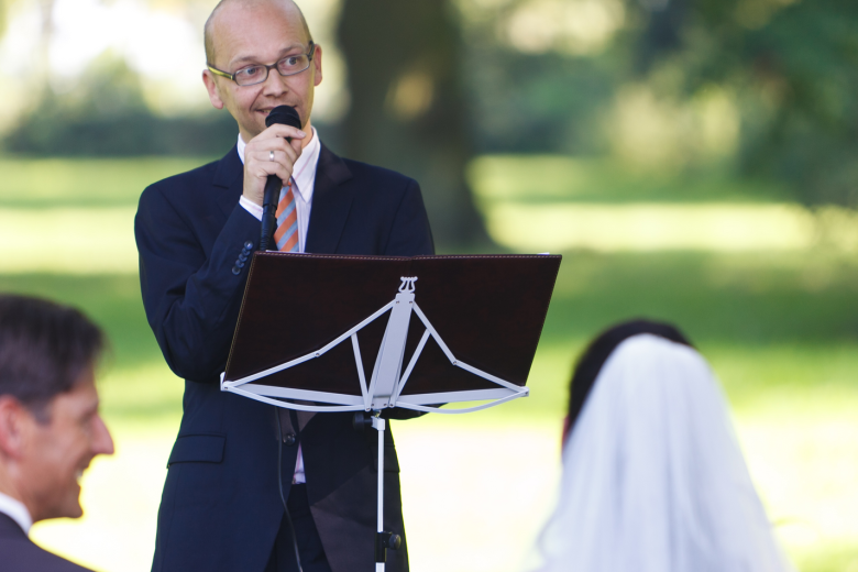 Wenn Ihr neben einer gelungenen Hochzeitszeremonie noch einen Moderator benötigt, könnte ich dies mit Freuden tun. Ich würde im Vorfeld die Beiträge sortieren und spritzig durch den Abend führen. So sind miese Spiele auf Eure Kosten, Langeweile oder ein endloser Stau von Beiträgen ausgeschlossen und Ihr könnt entspannt Eure Feier genieißen!