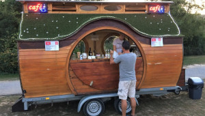 Er ist als als mobiler Werbe- und Cafewagen ausgebaut und pefekt verwendbar für Crepes, Waffeln, Cafe, Snacks, Pizza, Cocktails und Getränke. Er kann auch zum Selbst betreiben gemietet werden.
