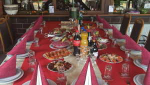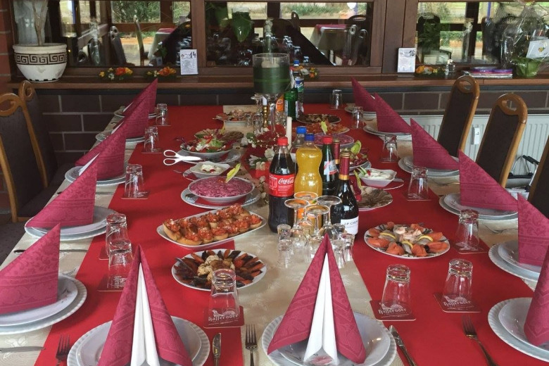 Für größere Feierlichkeiten bis zu 65 Personen ist unser grosser Raum passend zum Feiern. Hell und freundlich eingerichtet mit Blick auf Wiesen und Felder und Zugang zur Terrasse und zum Garten. Das große Vordach über der Terrasse ermöglicht auch bei wechselhaften Wetter einen Aufenthalt im Freien.