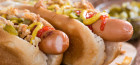 Ihre Gäste können die Hotdogs aus bis zu 13 verschiedenen Auflagen selbst individuell belegen. Die geniale Hotdog Schleuder ist auch ein Eye-Catcher.