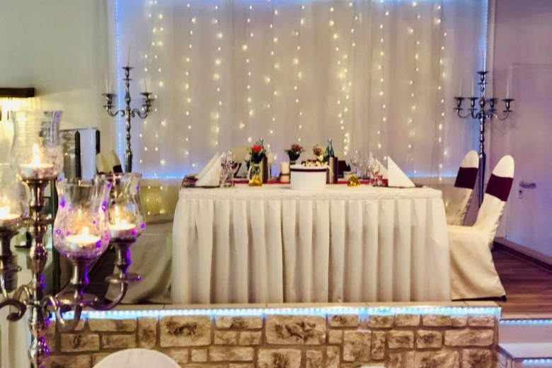 Das Hotel bietet Ihnen eine Fülle von Möglichkeiten. Einen wunderschönen, klimatisierten Saal mit einem besonderen Ambiente, sehr geeignet für Hochzeiten, Geburtstagsfeiern, Weihnachtsfeiern, Partys und jegliche Art von Feiern. Nach der Hochzeitsfeier, Party oder Tagung, können Sie gerne in unseren Zimmern mit Frühstück zum günstigen Preis übernachten. Für Hochzeiten steht eine komplette Hochzeitsbestuhlung bereit. Für Tagungen, Konferenzen, Versammlungen und Besprechungen, steht Ihnen eine komplette Sitzeinrichtung, Sprechanlage, Beamer und eine 3 m lange Leinwand sowie das dazu passende Equipment zur Verfügung.