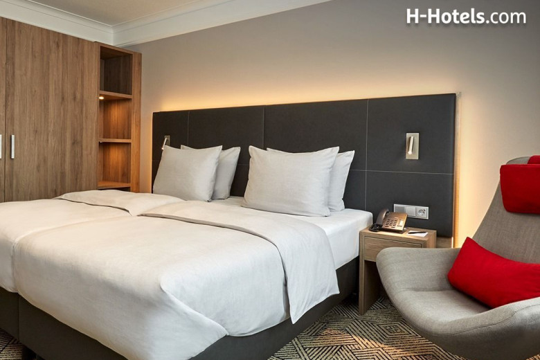The hotel is really new and modern. The rooms are really beautiful and have a huge TV. The first filling of the Mini Bar is included. The only thing that we didn't like is a sound, we believe that it is the air condition of the kitchen, that was hearable. The breakfast was very nice and tasty.