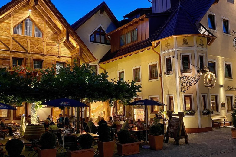 Quite a nice tourist trap. The rooms could do with updating but the restaurant is all decked out in wood and feels very welcoming. The food is delicious bavarian fayre, especially the pretzel and spreadable pork scratchings (pork dripping). The Kasespatsle is excellent.