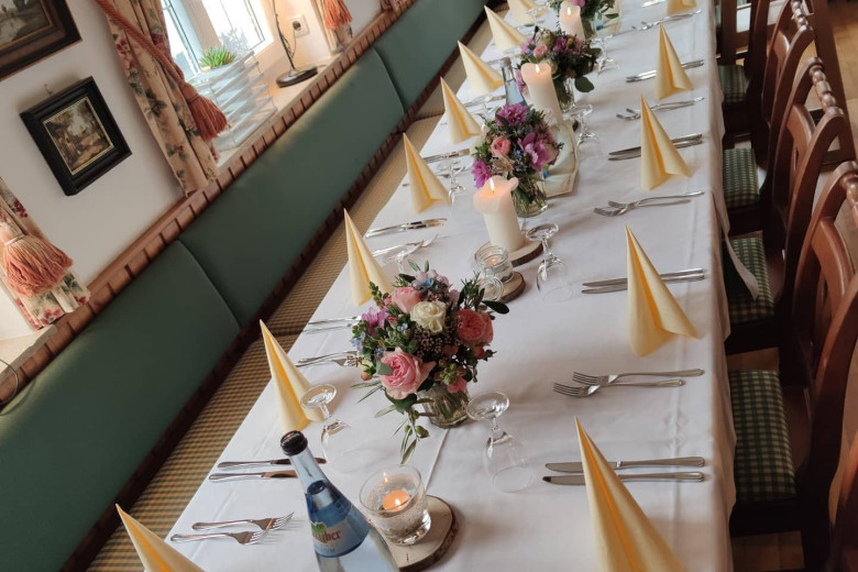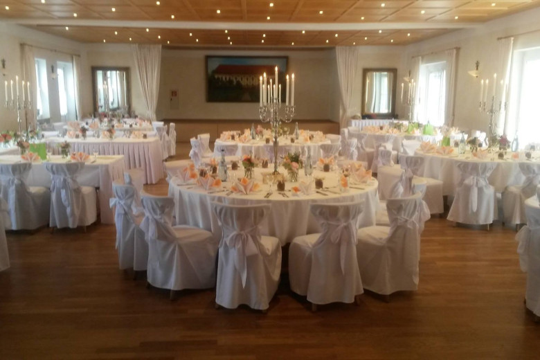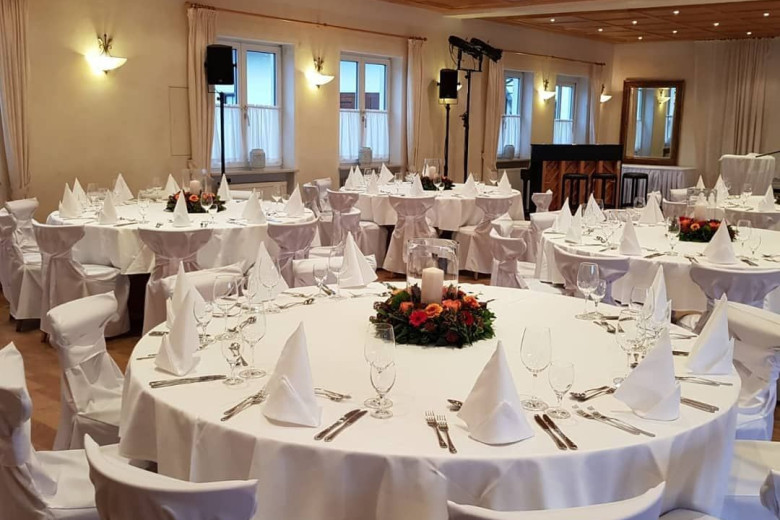 Zum Heiraten in München gehört natürlich auch eine große Feier mit Verwandten und Freunden. Mit unserem geräumigen Hochzeitssaal für bis zu 170 Gäste mitsamt Weinstadl zum Brautverziehen und großer Tanzfläche stellen wir Ihnen die perfekte Hochzeitslocation unweit von München zur Verfügung. Bei sommerlichen Temperaturen kann auch die angrenzende Terrasse genutzt werden.