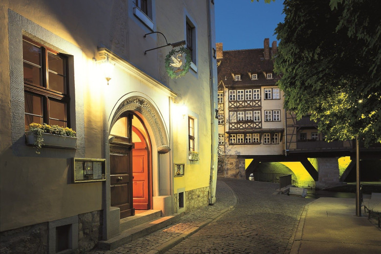 Wirklich schönes und gemütliches Hotel mitten in der Altstadt und an der Krämerbrücke. Der Hauptbau ist mit modernen Zimmern ausgestattet. Leider keine Minibar auf dem Zimmer, der Stauraum könnte großzügiger sein.