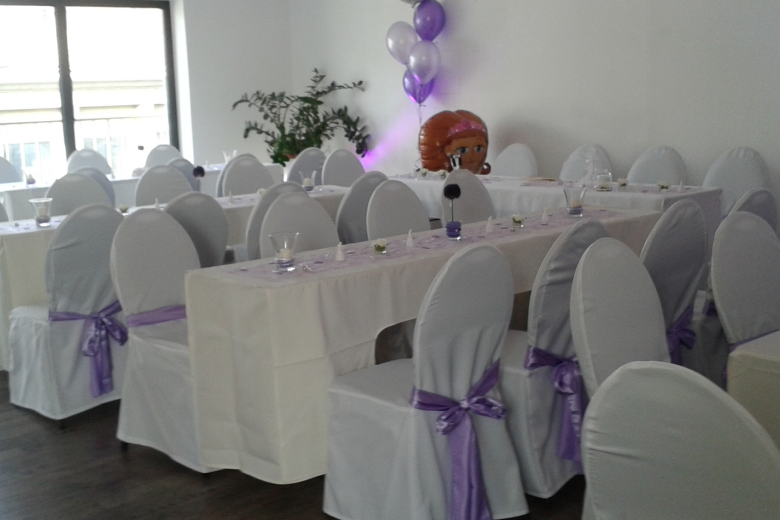 Das VIP-Paket ist auf 60 Personen gerechnet und enthält folgende Leistungen: Raummiete, Mobiliar (lange Tische mit Stühlen und Hussen, Stehtische mit weißen Hussen), Musik- und Lichtanlage mit DJ, Tischwäsche, Getränke (Pauschale von 10 Stunden), Häppchen und Knabbersachen zum Sektempfang, 4x Personal und ein Ansprechpartner vom Haus Exklusive: Catering und Dekoration!