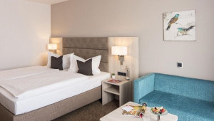 Ein Hotel ohne große Höhen oder Tiefen . Großer Parkplatz . Bad und Dusche Sehr beengt . Herausragendes Restaurant . Seher lecker und ein sehr gutgelaunter und höflicher Kellner !