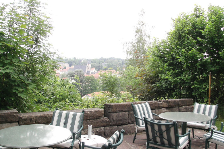 Sehr schön gelegenes Hotel oberhalb von Schmölln, umringt von Grünflächen und Bäumen, daher sehr ruhig. Stadtlärm dringt nur sehr gedämpft durch.