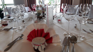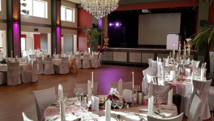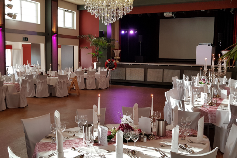 Der lichtdurchflutete Festsaal ist der ideale Ort für Eure Hochzeitsfeier. Die individuell unterteilbaren Räume bieten Platz für Euch und bis zu 200 Hochzeitsgäste. Der große Tresen inmitten des Saales lädt zum Verweilen ein und auf der großen Tanzfläche kann heiter getanzt werden. Ein weiteres Highlight ist der große Kronleuchter, der perfekt geeignet ist für einen romantischen Hochzeitstanz. Zimmer gibt es nebenan im Gästehaus.