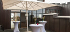 Zwei durch eine Glaswand voneinander getrennte Ebenen bieten Ihnen die Möglichkeit, Ihre Veranstaltung räumlich elegant zu unterteilen.