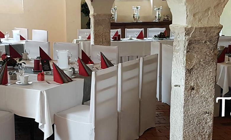Dazu steht Ihnen für Ihre standesamtliche Trauung unser Sommerrefektorium, ein sehr repräsentativer 2- schiffiger Raum mit einem Kreuzgewölbe, der durch drei Säulen mit einzigartig erhaltenen Kapitellen geteilt wird, mit 40 Sitzplätzen von Anfang Mai bis Ende Oktober zur Verfügung.