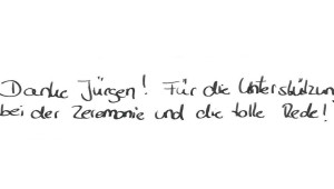 Das erste gemeinsame Kennenlern- und Beratungsgespräch dauert rund eine halbe Stunde und ist natürlich kostenlos und unverbindlich. Wenn Ihr anschließend der Meinung sind, dass ich Euren Jubeltag mit meiner Rede starten darf, so treffen wir uns noch zweimal zu ausführlichen Vorgesprächen á ca. 1,5h.