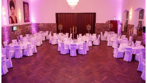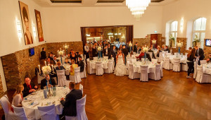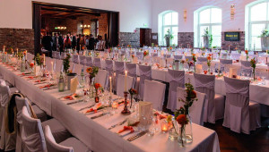 Der große barrierefreie Saal mit 5,30 m Deckenhöhe bietet Platz für Hochzeiten mit bis zu 180 Personen. Die einzigartige Bühne und das moderne Licht- und Tonsystem des Saales ermöglichen zudem ideale Rahmenbedingungen.