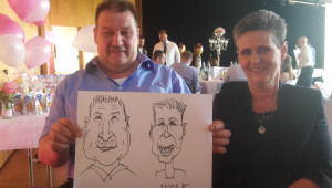 Ich zeichne lustige Schnellzeichungen von Ihnen und Ihren Gästen! Die Super-Stimmung ist quasi garantiert! Man kann sich einzeln, paarweise oder zu Gruppen (bis zu 6 Personen) pro Blatt zeichnen lassen. Viel Vorbereitung benötige ich nicht: Mit einem festen Platz mit einem Tisch und drei Stühlen bin schon startbereit. Alternativ komme ich auch an die Plätze der Gäste.