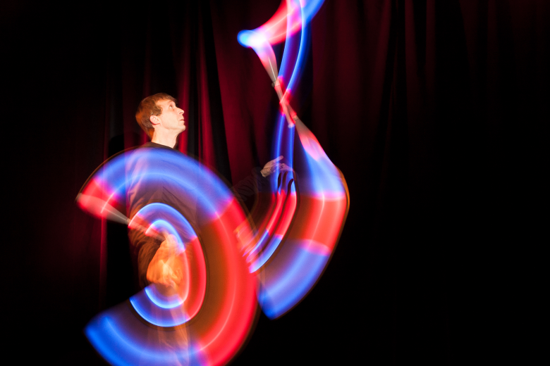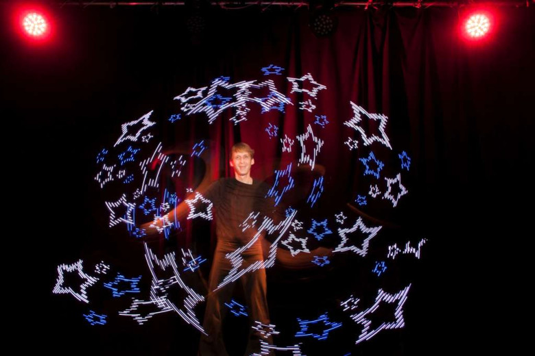 Leuchtende Kugeln tanzen zum Klang, malen die Musik, erzählen eine stimmungsvolle Geschichte, mal schnell und heiter, mal ruhig und romantisch, so spannend wie das Leben selbst.