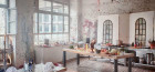 In zentraler Lage, unweit des ehemaligen Mauerverlaufs an der Bernauer Straße und in nur 1,5 km Entfernung zur Friedrichstraße liegen unsere beiden Fabrik-Lofts mit einer Eventfläche von insgesamt 600 qm. Das 1904 erbaute Gebäudeensemble gehört zu den wenigen Berliner Gewerbehöfen, die sich ihren ursprünglichen Charme über die Nachwendezeit hinaus erhalten haben und deren agile Hinterhof-Kultur durch die gestalterische Handschrift seiner Bewohner geprägt ist. Das vollausgestattete, helle Loft befindet sich im Erdgeschoss und bietet zusätzlich eine Außenterrasse, die im Sommer für Veranstaltungen genutzt werden kann. Das Loft verfügt über eine Nutzfläche von 120 qm; ausreichend Platz für Veranstaltungen mit bis zu 60 Personen.