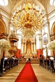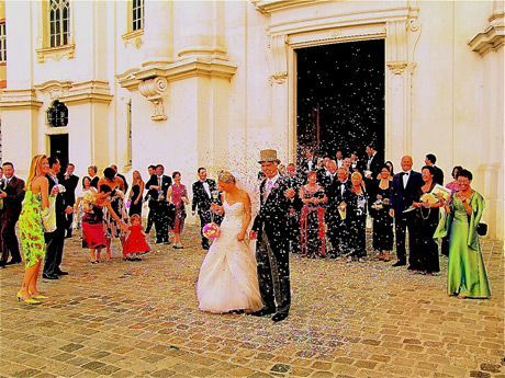 War einst der Weg des Brautpaares in die Hofburg allerorts von Pracht und Jubel gesäumt, so entsteht heute noch bei einer malerischen Kutschenfahrt über die Ringstraße die passende Einstimmung auf das große Ereignis. Auf Wunsch empfängt das Deutschmeister Schützenkorps das Paar vor der barocken Trauungskirche des Piaristenklosters mit Ehrensalut und klingenden Spiel und wird zur Agape ein imposanter Kanonendonner über die Josefstadt geschossen.